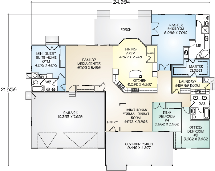 A large front porch sets a welcoming tone to this spacious plan. Inside, the Napa panelized kit home offers almost unlimited possibilities for customizing the individual rooms. Any of the bedrooms can be modified to serve as a den, home office, or game room, while the mini guest suite includes private and house access, a private bath, and a kitchenette. The large master suite enjoys direct access to the back porch and a sizable walk-in closet. Centrally located, the double-entry kitchen and nook has a large island, pantry, and computer desk. The Napa’s unique multi-use laundry room is accessible from the main living areas, master suite closet, guest bath, and the backyard. Adjacent to the kitchen, the multi-use family room offers an extensive view of the backyard as well as direct entry into the three-car garage.