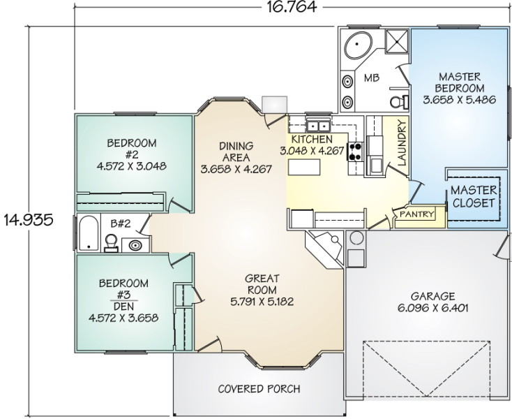 The Plymouth panelized kit home has been thoughtfully designed with an eye toward comfort. Located a few steps from the entryway, the great room provides a welcoming and convenient venue for entertaining. Another feature of this plan is that the family bedrooms are on the opposite side of the house from the master bedroom, creating a wonderful retreat environment. The master bedroom suite also offers a generously-sized master bath and walk-in closet.